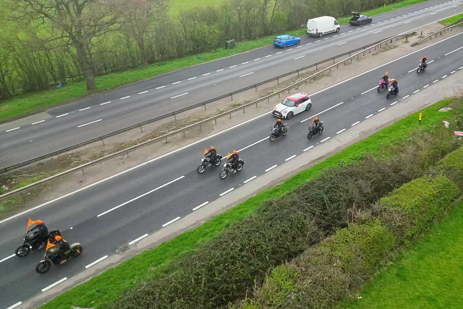 Drone Media Iamging was hired to shoot the aerial general views of the bikes as they passed along the A46 from Leicester to Nottingham